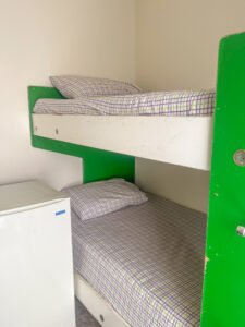 Single bed and set of bunks, Fridge, Shared bathroom & BBQ.